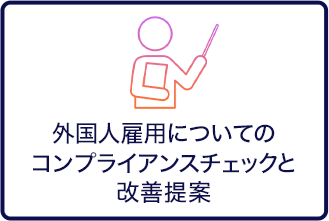 外国人ならではの入管法令関係、労務関係の専門家が御社の人事担当者を支援します。