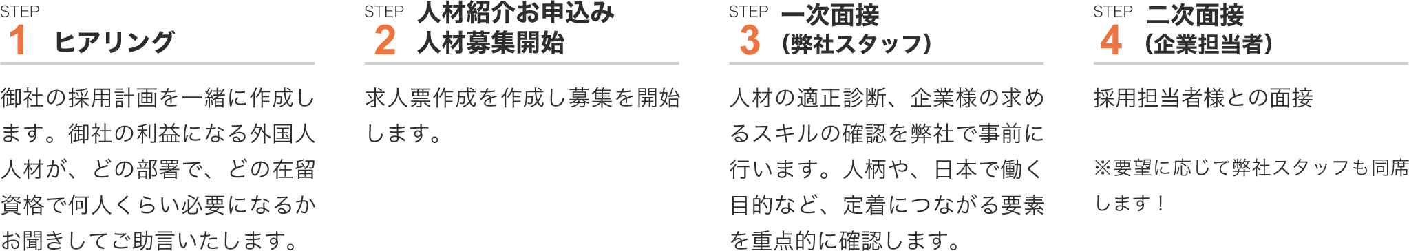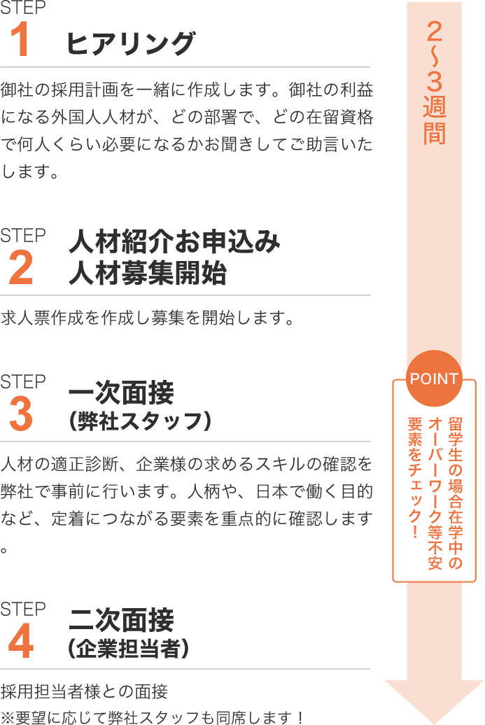 国内外の教育機関と提携し、御社の要望にマッチした人材をご紹介いたします。