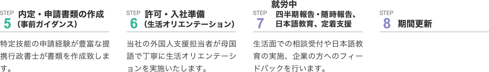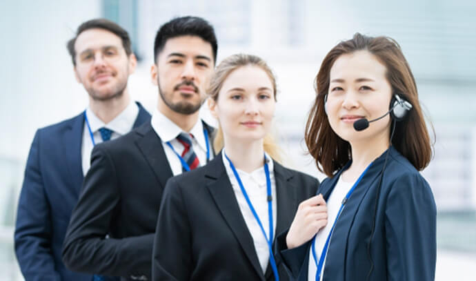 社内の外国人スタッフ、外国人キャリアプランナー、労務管理の専門スタッフにより支援チームを構成しております。